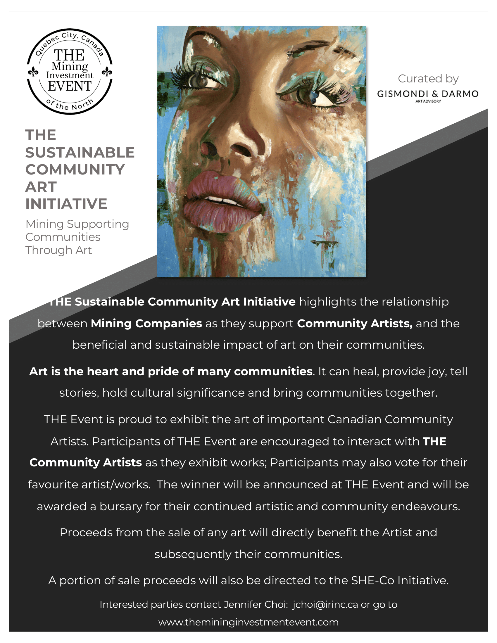 With Darmo, assisting in curating and bringing in the artists and their works to THE Event, we will launch THE Sustainable Community Art Initiative. We will be speaking to many mining firms and governments who have large footprints in communities where they operate, where we can find and feature those community artists at THE Event. The main benefit is that mining companies will not just be talking about their community efforts, but they will be able to directly highlight the relationships between them as they support Community Artists, and the beneficial impact of art on those communities.